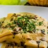 Inspirado en la cocina italiana, crepe relleno con carne molida estilo boloñesa y cubierto con queso parmesano y albahaca.