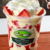 Rico y salusable. Mezcla de yogurt sin azucar y salsa de frutos rojos, con fruta (piña o fresa) y granola.